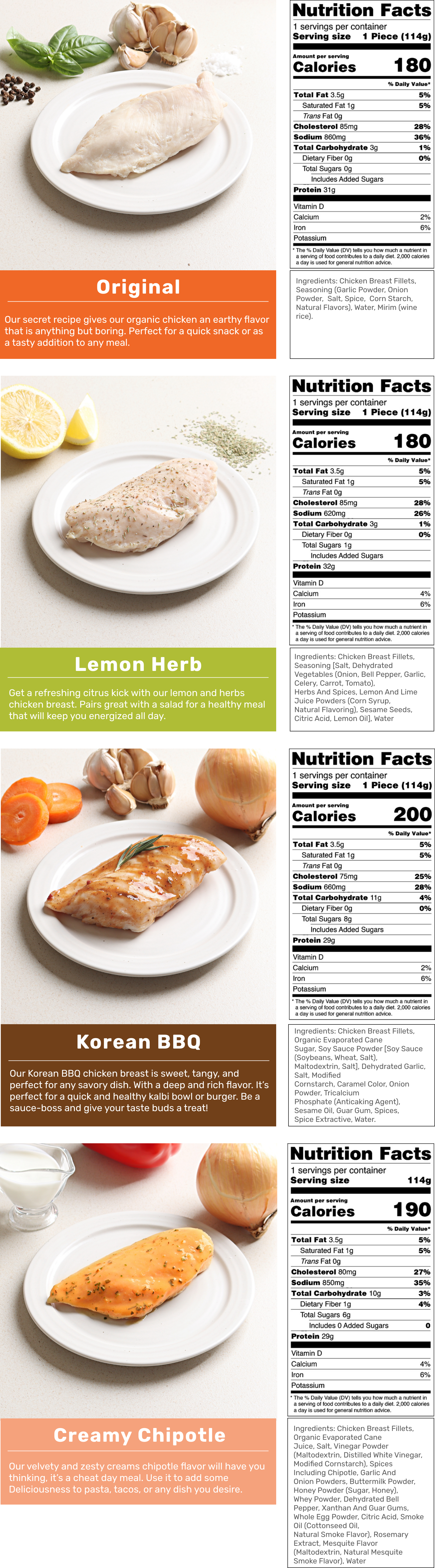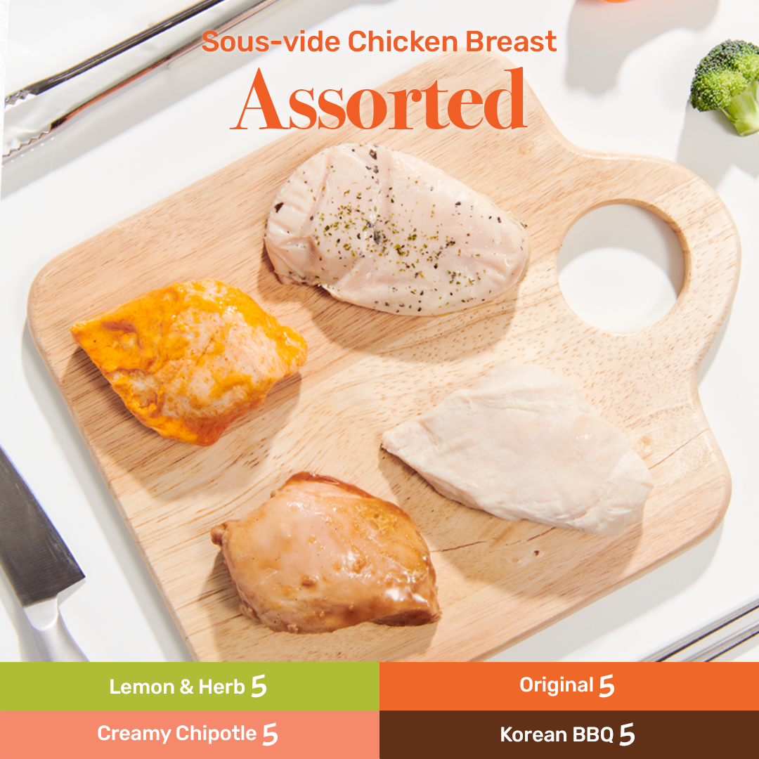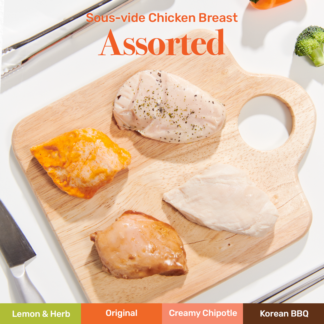 We were tired of juggling our own protein and health needs with busy lives, and settling for lesser-quality meals just to get through the day, or sacrificing an afternoon to meal prep for the week ahead. No solution seemed to be good enough - and we knew other people were struggling with the same problems - so we decided to do something about it. Now, we're bringing you gourmet sous-vide chicken breast packing 48 grams of protein, in flavors you'll never get bored of, delivered straight to your doorstep!